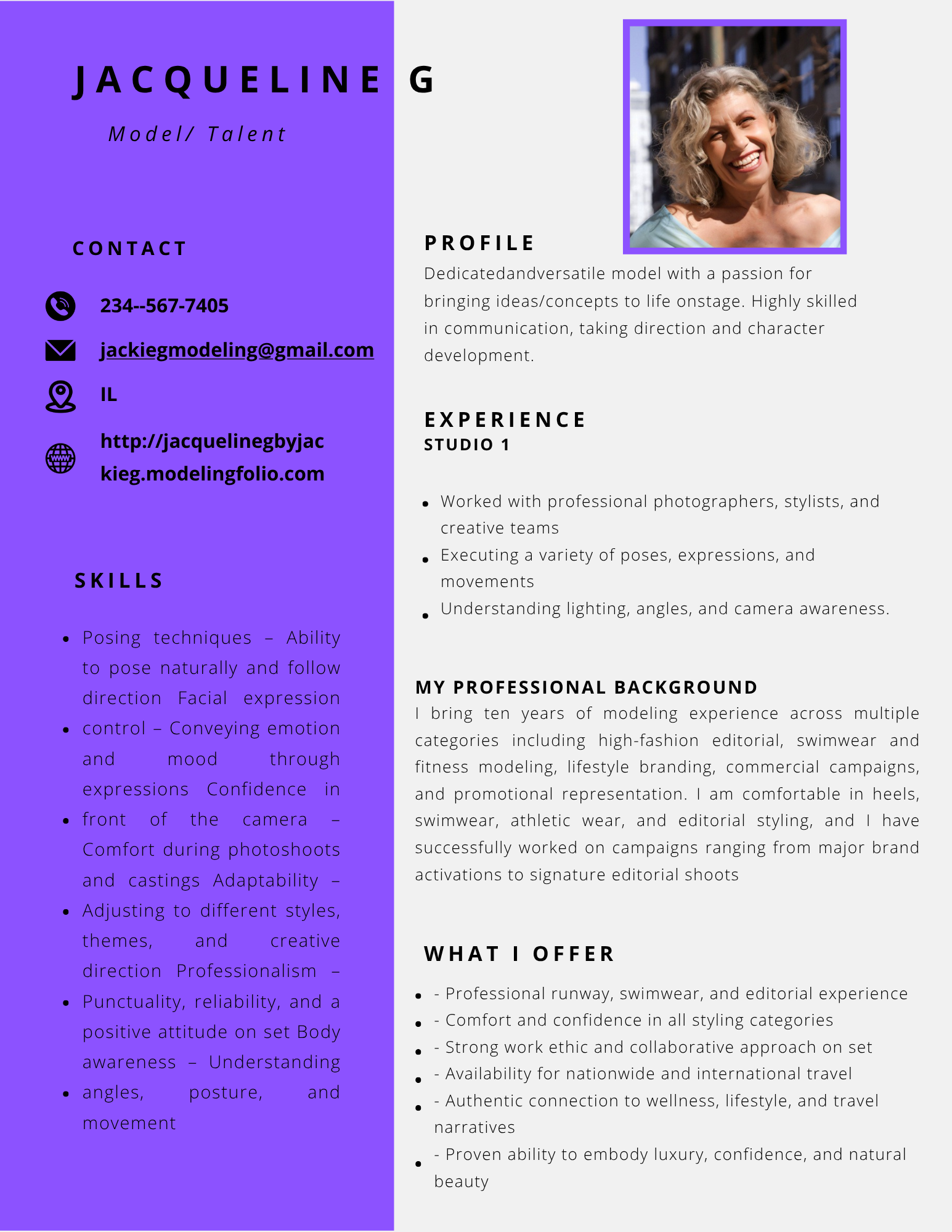 Welcome to Jacqueline G. by Jackie G Modeling.